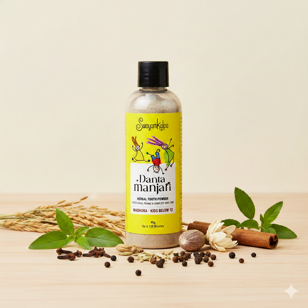 Danta Manjari’s Natural Herbal Tooth Powder for Kids is crafted to make oral care fun, tasty, and effective for children. With a delightful touch of natural sweetness from Stevia leaves and Cinnamon, this gentle formula is designed to match kids’ taste preferences while still offering the trusted benefits of traditional oral care.